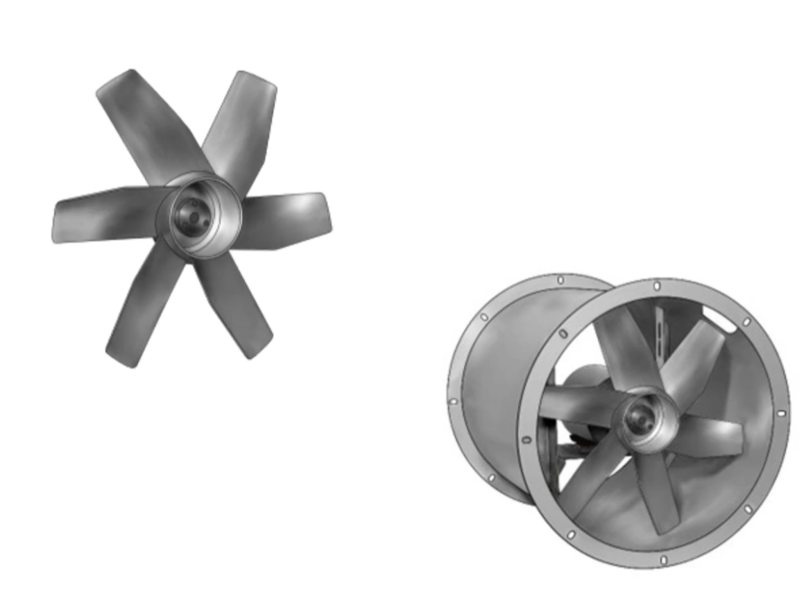 ↳ Air is drawn into the impeller and pushed outward along the axis - Best suited for large airflow / low static pressure environments