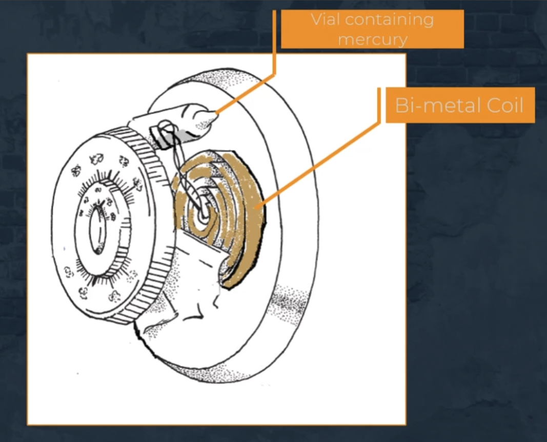 Some older electromechanical thermostats contain mercury, which is a hazardous material and is no longer manufactured in the United States. In these thermostats, temperature changes cause a mercury-filled vial to tilt.