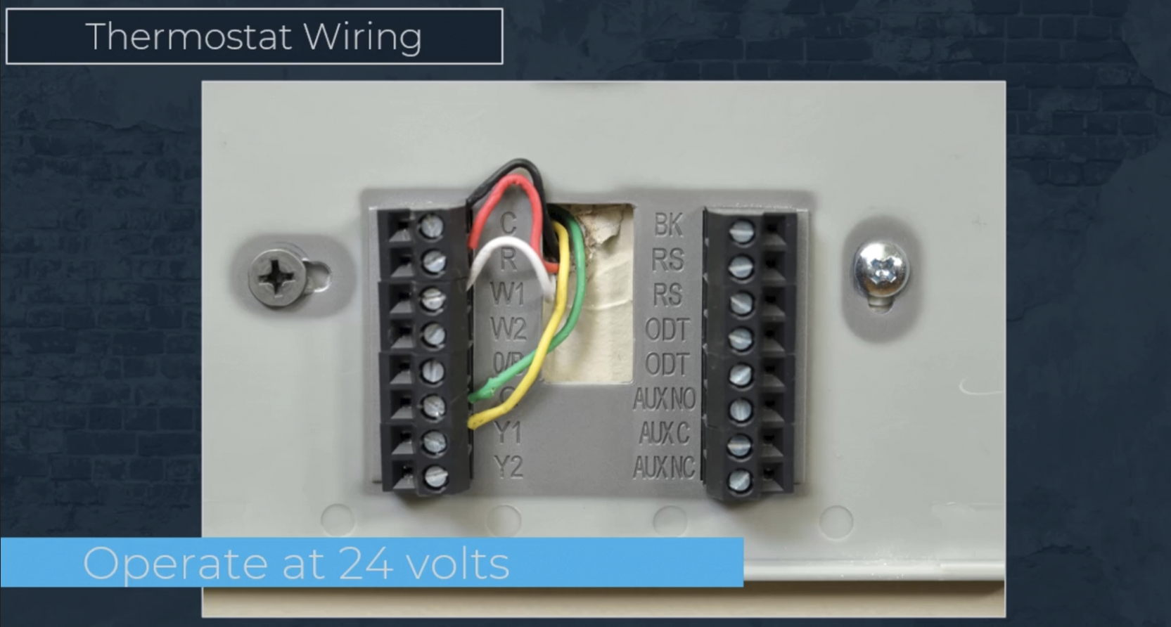 - R (Red) – Supplies 24-volt power from the transformer to the thermostat